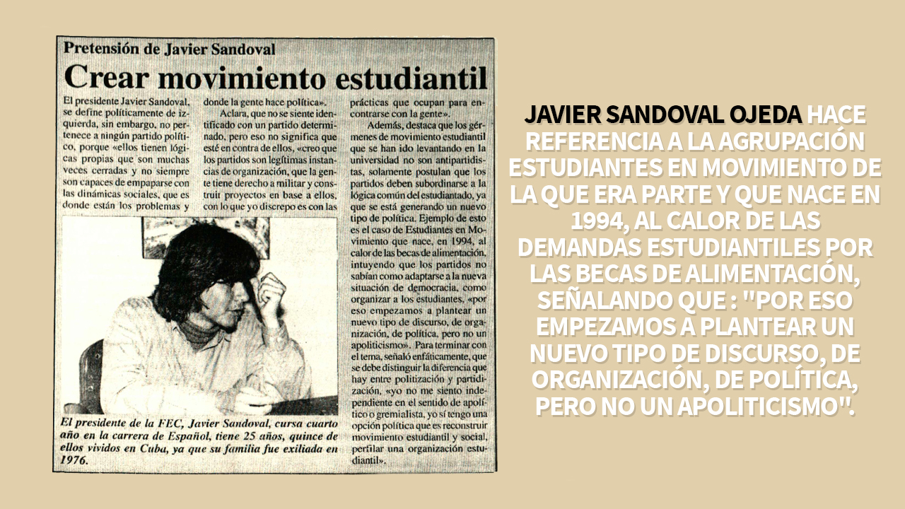 A fines de 1991, Javier regresa a Chile y se instala nuevamente en Concepción. Ingresa a Pedagogía en Español en la Universidad de Concepción, donde inicia su participación política. En 1996, es electo presidente de la FEC, liderando movilizaciones estudiantiles por una educación superior más justa y accesible.